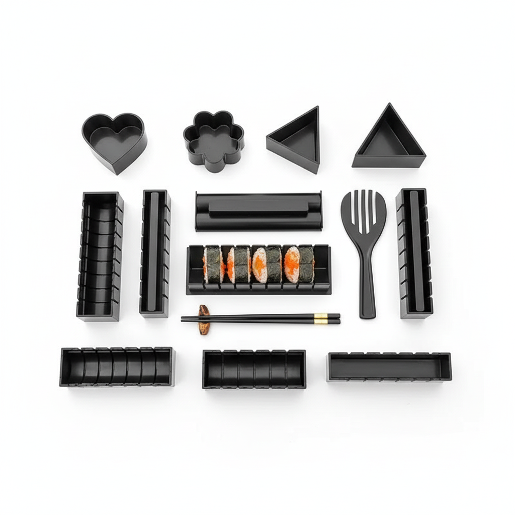 Das Set beinhaltet klassische Rollen, Nigiri, Dreiecksformen und weitere kreative Sushi-Formen für maximale Vielfalt.